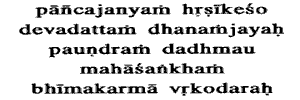 the Panchajanya and Dhananjaya (Arjuna) blew the Devadatta, and Vrikodara
