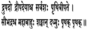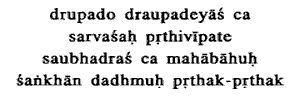 18. the unconquered, Drupada and the sons of Draupadi and the mighty armed son of Subhadra-all blew their respective conches.