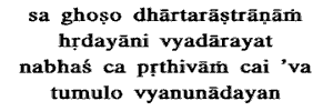 sound rent the hearts of (the people) of Dhritarashtra's party, making both