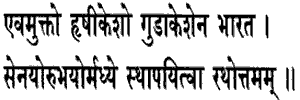 24. Sanjaya stated: " Thus addressed by Gudakesha (the conqueror of sleep, i.e., Arjuna); Hrishikesha, having stationed that best of chariots between the two armies,