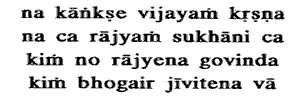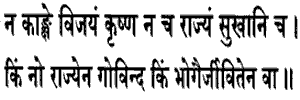 32. for I desire not victory, nor kingdom nor pleasures. Of what avail is dominion to us; O Govinda ? Of what avail are pleasures or even life ?