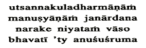 O Janardana, that necessary is the dwelling in hell of the men whose familydharmas