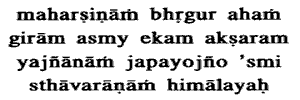 25. Of the Great Rishis I am Bhrigu ; of words I am the one syllable Om ; of offerings I am the offering, of Japa (silent repetition), of unmoving things the Himalaya.