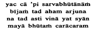 is the seed of all being, that also am I, O Arjuna. There is no being, whether