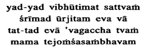 41. Whatever being is glorious, prosperous, or strong, that know thou to be a manifestation of a part of My Splendour.My: the Isvaras.