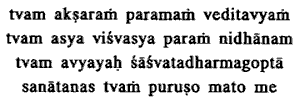 Thou art the ancient Purusha, I deem.To be known: by seekers of liberation.