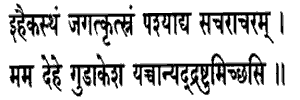 7. Now behold here in My body, Gudakesa, the whole world established in one; including the moving and the unmovingand whatever else thou desirest to see. Whatever else: Your success or defeat, about which you have entertained a doubt (ii. 6). But,