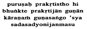 Purusha, the experiencer, is seated in Prakrirti, in avidya or nescience;