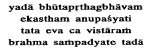 of beings abide in the One, in the Self, i,e when he intuitively realizes