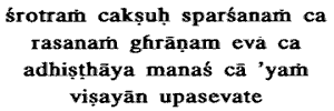 enjoys the senseobjects, Using the manas along With each sense separately,