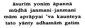 into demoniac womb, the deluded ones, in birth after birth, without ever