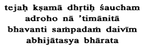 one born for a divine lot, O Bharata · Tejas means energy, not brightness