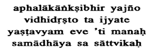 is Sattvic which is offered by men desiring no fruit, as enjoined in the