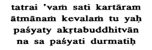 upon the pure Self as the agent, is a man of untrained understanding ; he does