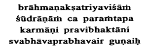 The source of the Brahmanas nature (svabhava) is the guna of Sattva; the source