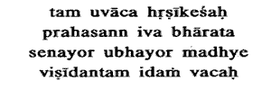 was grieving in the midst of the two armies, O descendant of Bharata, Hrishikesa