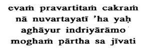 senses he lives in vain O son of Pritha.He who ought to perform action,