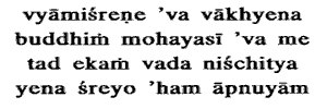 to be perplexing. Thereby Thou confusest as it were my understanding. Arjuna