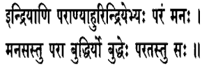 of action. So say the wise. Superior to the senses is mind (manas, the impulsive