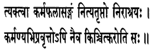 attachment for the fruits of action, ever content, dependent on none, though