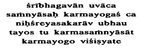 of action.Samnyasa and Karmayoga, renunciation of actions and performance