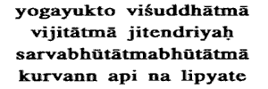 of all beings,though doing, he is not tainted.He who is equipped with Yoga,