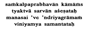 24. Abandoning without reserve all fancy born desires, wellrestraining all the senses from all quarters by the mind ;By the mind: endued with discrimination: