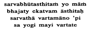 on unity, worships Me who abide in all beings, that Yogin dwells in Me,