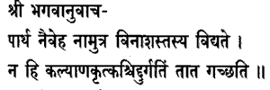 Lord said:O Partha, neither in this world nor in the next is there destruction