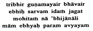 Illusion (Maya) of Vishnu made up of the three gunas ?Listen: |