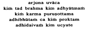 1. When Arjuna asked: "Oh, Sri Krishna, what is Brahman ? Which is Adhyaatma? Which is Karma? What are Adhibhoota, Adhidaiva, Adhiyagna ?`