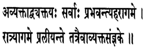the coming on of night they dissolve there only, in what is called the Unmanifested.The
