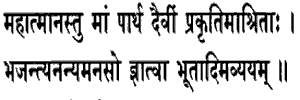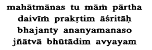 turned to no other, knowing Me as the imperishable source of all beings.Mahatmanas