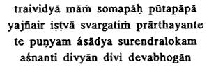 three Vedas, the soma drinkers, purified from sin, worshipping Me by sacrifices,