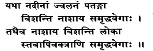 28. As many torrents of rivers flow direct towards the sea, so do these heroes in the world of men enter Thy flaming mouths. These: such as Bhishma. Why and how do they enter ?Arjuna says: