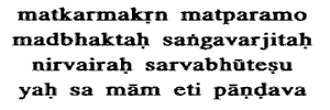 works for, Me, who looks on Me as the Supreme, who is devoted to Me, who