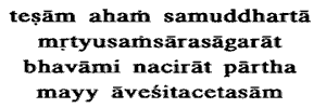 Me exclusively, the Lord, will lift up from the ocean of mortal samsara,