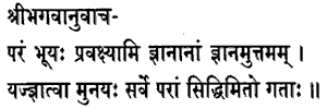 1. It has been said that all that is born is produced by the conjunction of Kshetra and Kshetrajna.How can it be so ? The present discourse is intended as an answer to this question.Or the connection may be explained thus: With a view to show that it is Kshetra and Kshetrajna, both dependent on the Isvara,but not independent in themselves as the Sankhyas hold,that constitute the cause of the universe, it has been stated that the dwelling (of the Kshetrajna) in the Kshetra (i.e his selfidentification with Kshetra) and his attachment for the Gunas from the cause of samsara (xiii. 21.)In what Gunas and in what way is He attached ? What are the Gunas ? How do they bind him How is liberation from the Gunas attained ? What are the characteristics of a liberated soul ?With a view to answer these questions, the Lord proceeds as follows: knowledge of the origin of the universe is necessary for Salvation. The Blessed Lord said: I shall again declare that sublime knowledge, the best of all knowledge's ; which having learnt, all the sages have passed to high perfection from here.Though declared more than once in the preceding discourses, I shall again declare that knowledge which is sublime as concerning itself with the Supreme Being. and which is the best of all knowledge's as productive of the best result All knowledge does not refer to those which have been spoken of as knowledge in the verses xi. 710 but to those kinds of knowledge which relate to sacrifices and other such things to be known. These (latter kinds of knowledge) do not lead to salvation, whereas the knowledge which is going to be imparted in this discourse does lead to salvation. So, the Lord praises this latter knowledge by the epithets sublime and best, in order to rouse interest in the minds of the hearers.