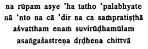 Having cut asunder this firmrooted Asvatha with the strong sword of dispassion.
