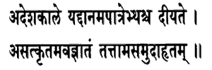 or with insult, that is declared to be Tamasic. At a wrong place and time: