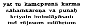 much trouble, that is declared to be Rajasic. Pleasures: as fruits of action.